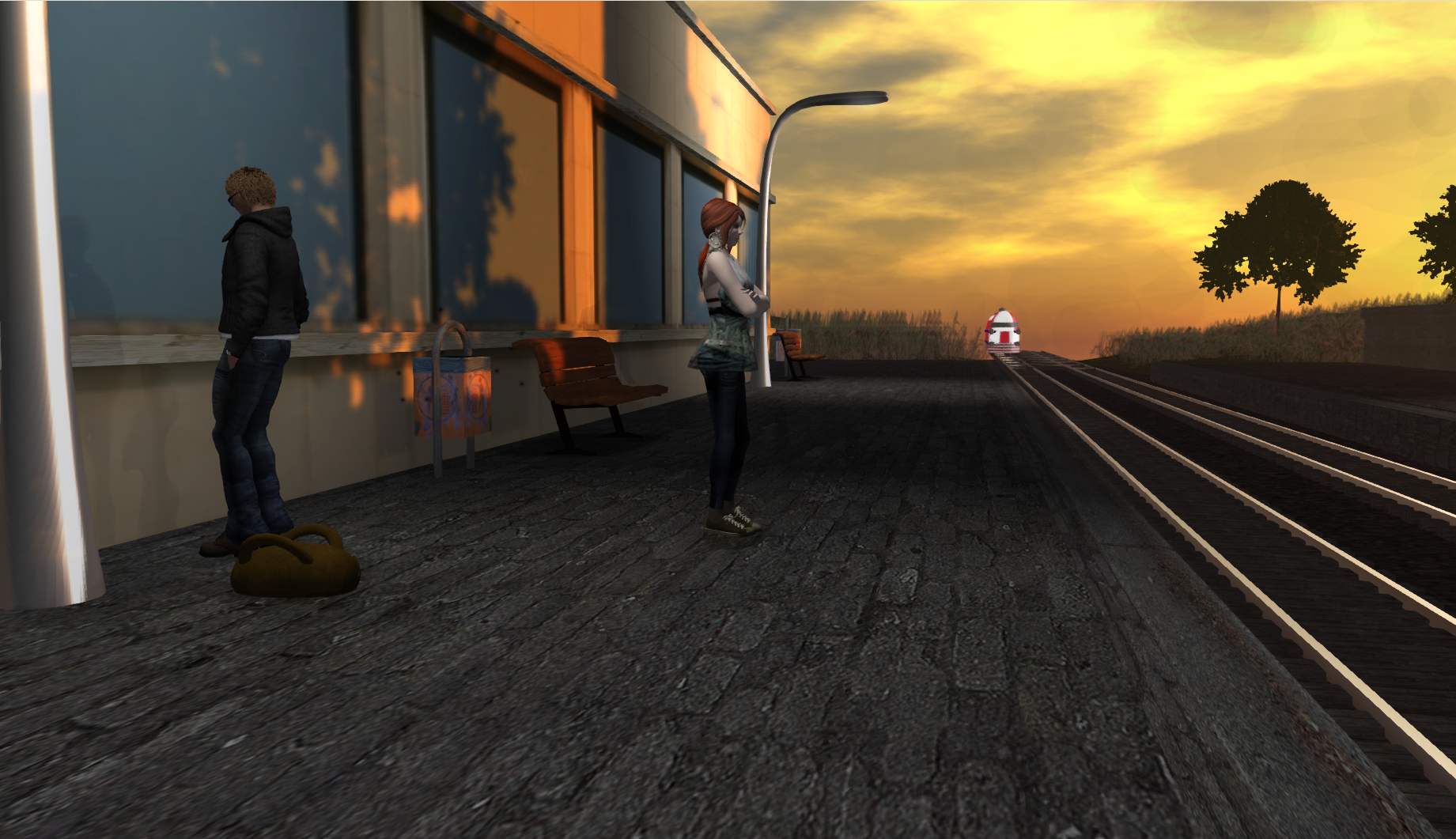 Suddenly she halted a few meters further on the platform, making him stop as well after a minimum exchange of words. The bag thudded on the concrete. I imagined it to be bursting with voluminous books containing hundreds of pages made out of frail paper filled with miniscule lines. Like a pocket bible. Books filled with all the words they would ever need, but would never say to each other if they could help it. Words that would no longer see the light of day.