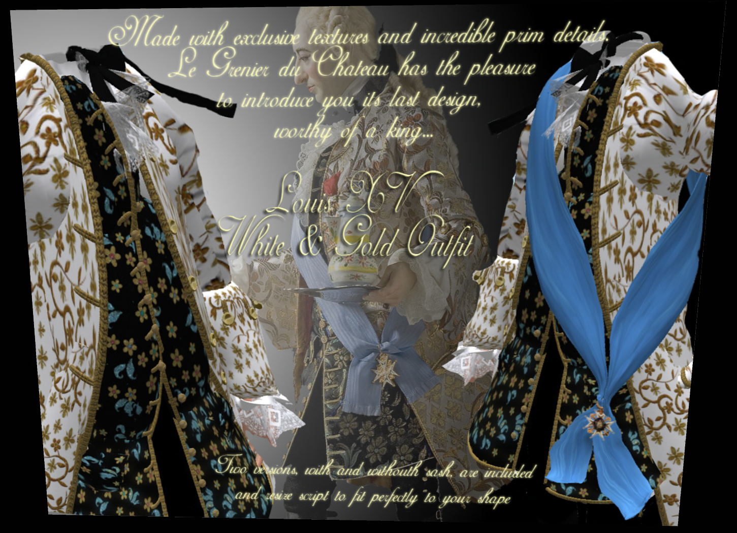 A very expensive looking outfit fit for a king. The french king Louis the XV in this case, a man who ruled France in from 1722 till his death of small pox in 1774. He thus missed or escaped the start of the French revolution roughly fifteen years later that saw his grandson Louis XVI beheaded. You can now be Louis the XV for a short while, no doubt there is a role play place somewhere that you go.