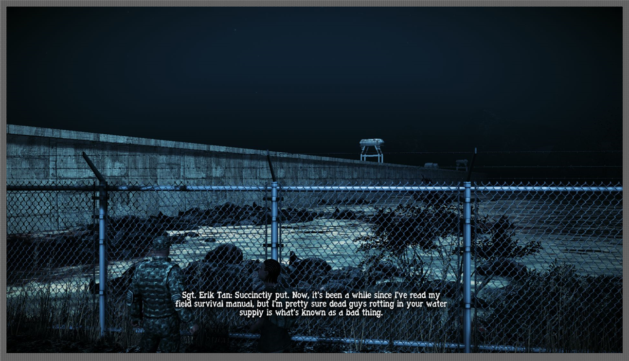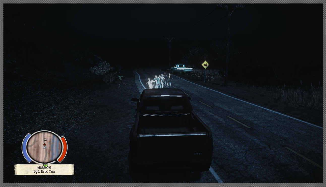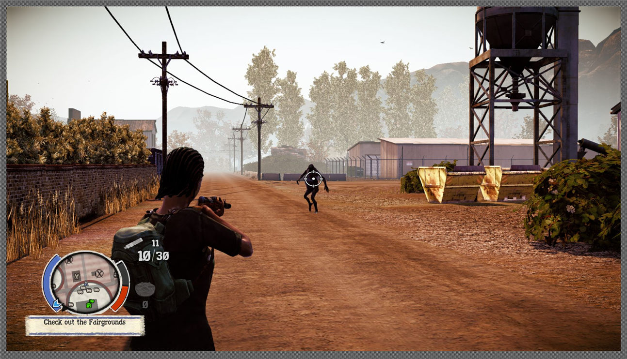 In addition the game almost lacks humor. For instance; one would have thought that the game would have added a chainsaw for laughs. A noisy heavy zombie killer that kills undead by scores but attracts them by the scores as well, but there is no such thing. Nor are there zombies dressed up as Bozo the Clown. I would have expected at least one at the fairgrounds… but no dice. Erik Tan is about the only one who sort tries to crack a joke, albeit mostly sarcastic and cynical ones.