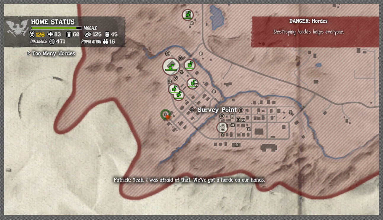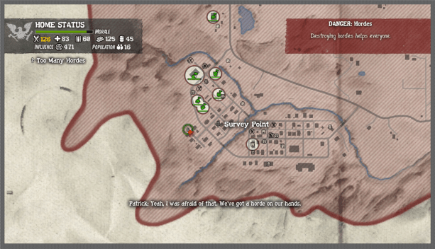 And when zombie hordes are threatening our home base we are often neatly informed about it. We have a direct line with Lily over the radio so at any time we can open the map or look at the state of the home base.