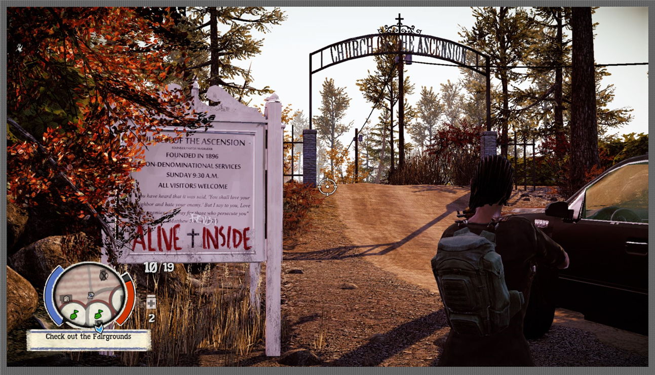Be aware that cars are zombie magnets. They will gather around your car while you are out doing missions or exploring a house.