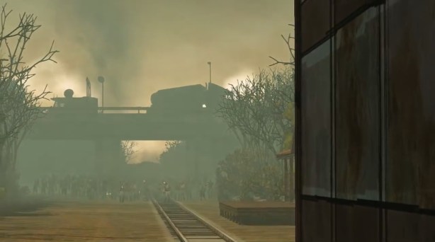 The walking dead opens with the skyline of Atlanta and it is a link between the television series, comic and the game. That way people will know the setting. In a later post I will comment further on the interaction of thoughts, feels and the use of language and imagery to invoke stories. Above the picture somehow I thought it read “A brand new day.” Note the beautiful blue sky and the sunny setting. Interestingly.. while this is the skyline of Atlanta we do no go to it.. the story takes us away from it. In this manner a possible conflict can be avoided. Bye bye Atlanta.