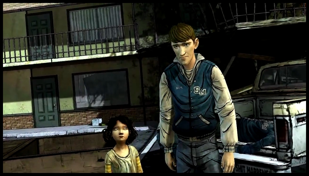 I was wondering what actually made the story work for me and after some pondering I figured that the most crucial thing in the game is the relation between the main character Lee and the little girl Clementine. Lee acts as Clementine’s replacement dad. It is therefore that I made a small movie showing two crucial moments in the game…the one where Lee and Clementine meet and the one were they part. In addition it also shows you how the game ends.. So that is three scenes.