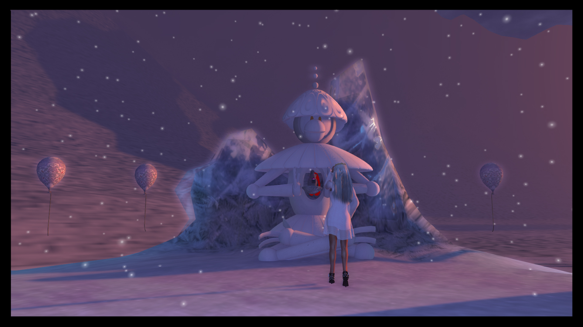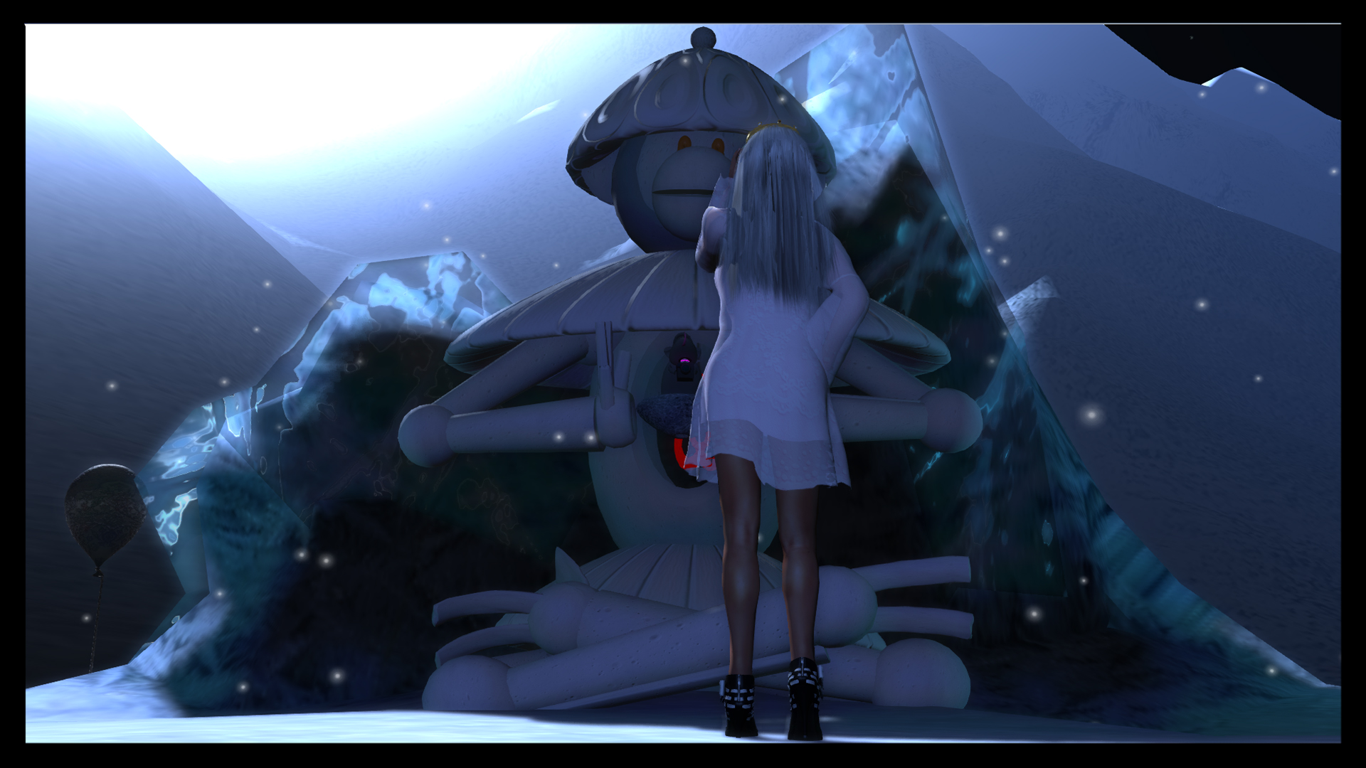 A few days ago Santalarity closed. Santalarity is a spin-off from Burn 2, the burning man art festival in Second Life. Tau hitched a ride on the small train that went around the site and then got sidetracked in a forest. Since I liked this forest with it strange trees, I decided to take some pictures and while I was at it, I took some of the other builds. Unfortunately I did not get all the builds, nor did I get the names of all the artists as some of the builds had already been removed and some were removed after I took a break so that I did have a picture of them, but not the artist who made it. If you know the artist or the name of the art(most did not have a name) then by all means place a comment or mail to meritcoba@gmail.com.