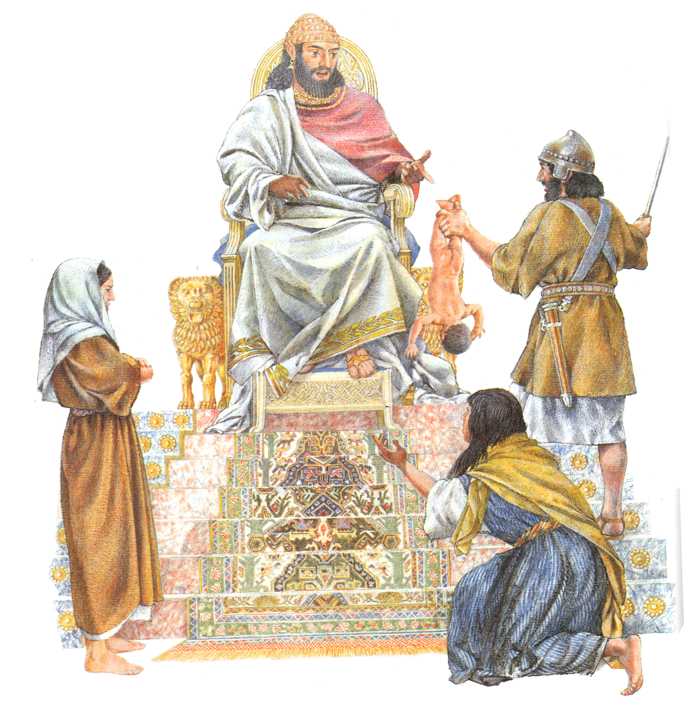 So a kid gets hold up by it’s feet and threatened in be cut in half. How more brutal can you be? The whole judgement has nothing to do with wisdom, but with violence and making women out to be retards. And this is then the showcase example of the wisdom of Solomon as given in the Bible for the Youth.