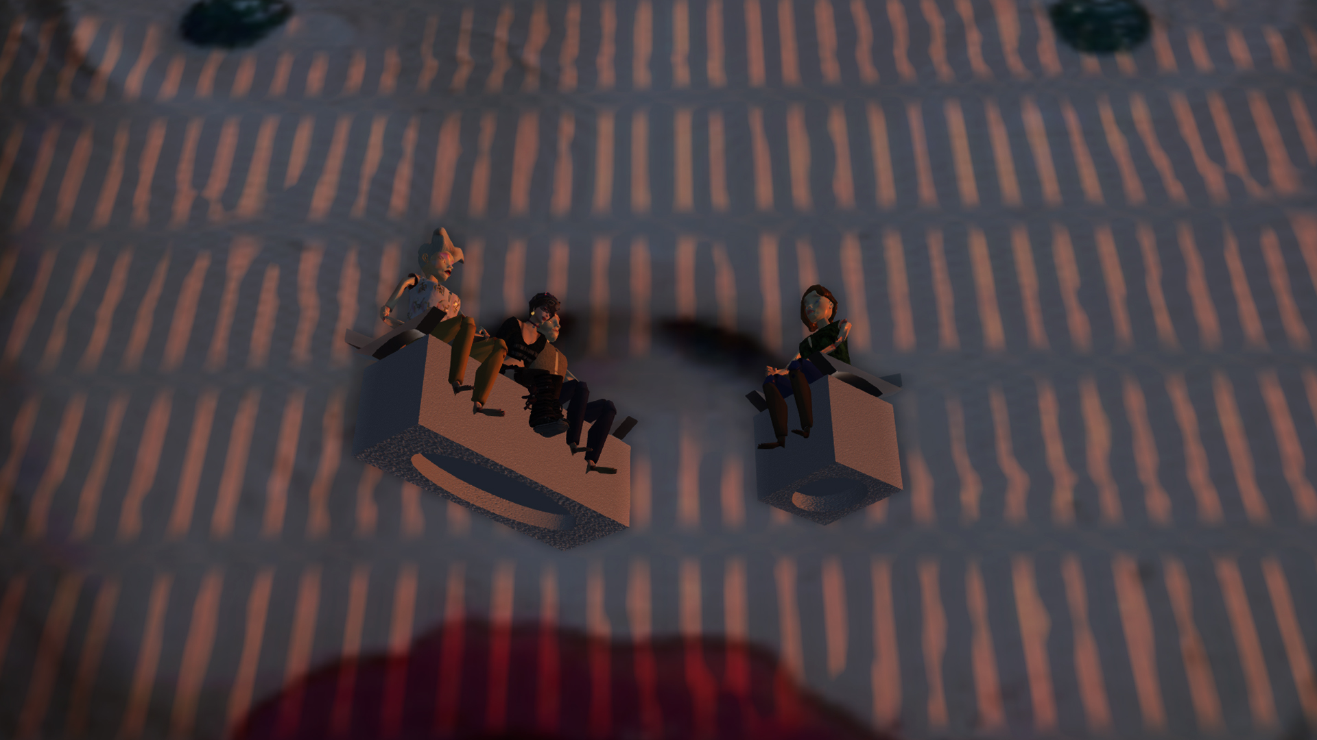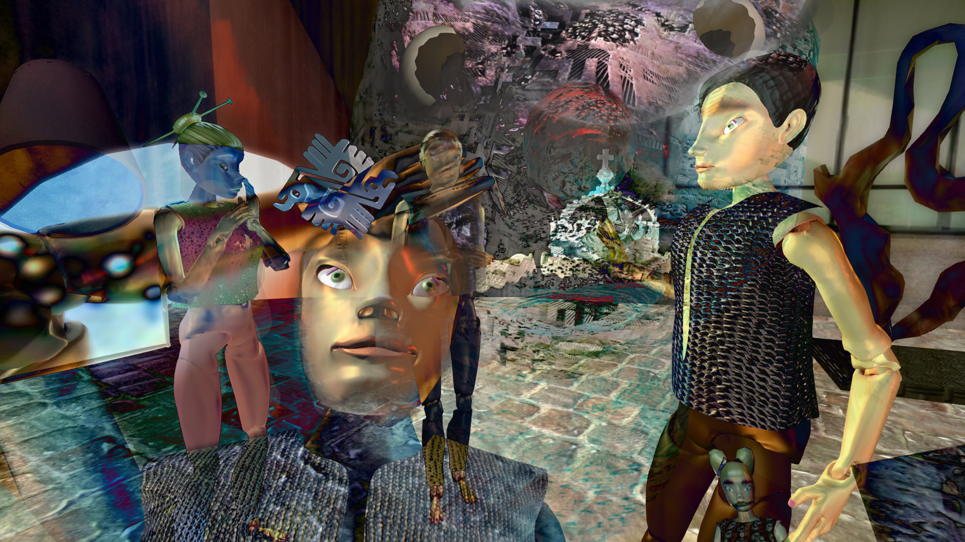 The exhibition uses puppets set up in various area’s that are scenes or stages, if you will, that are displayed in a snapshot fashion. You could say it’s an comic in a way, for the camera moves from one scene to the next. Each scene however is not just a static display.. there is a small dialog and sometimes the camera shifts within the scene and the puppets are animated.